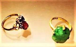 清 金镶红蓝宝石戒指 金镶翠戒指