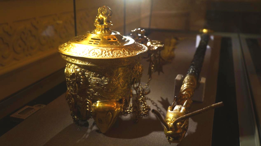 《熠熠朝辉——故宫博物院典藏清代金银器》展览分为四个单元,分别是“垂范庙堂:礼器仪物”“琳琅多彩:首饰妆佩”“奢华精丽:日用陈设”以及“庄严宝相:造像法器”。