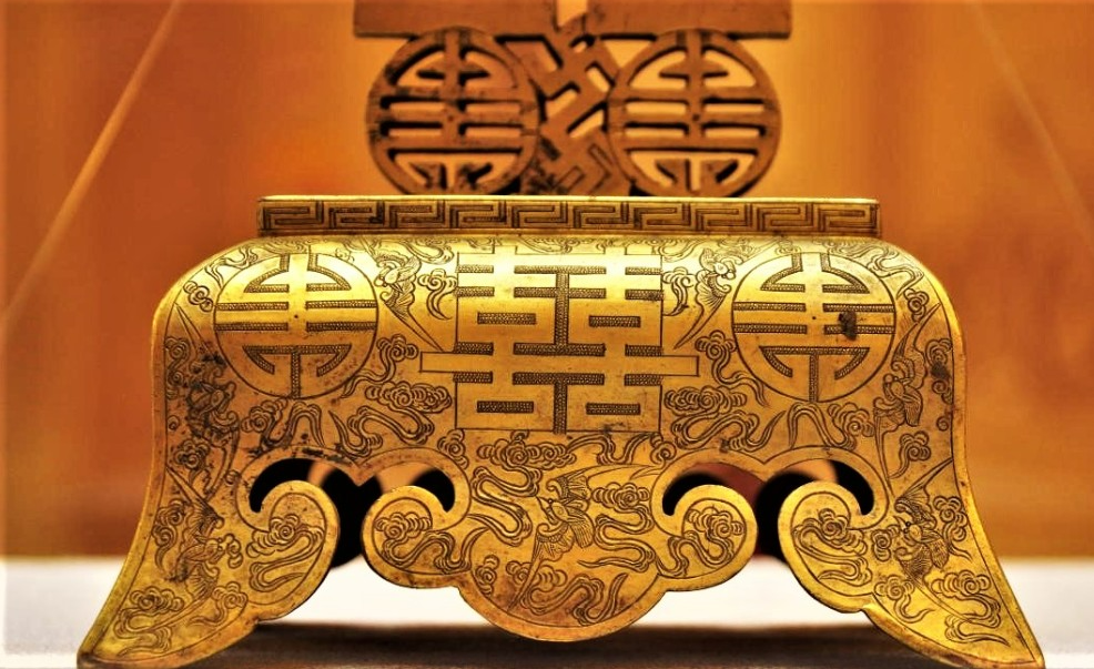 展览中的清宫金银器均为乾隆至宣统不同时期的制作,以贵金属为材料,施以范铸、锤揲、焊接、鎏金、錾花、掐丝、镶嵌等技法。由此我们不仅能够欣赏古代工匠的精湛技艺,还可以“透物见人”,探究清代的典章制度与宫廷文化。