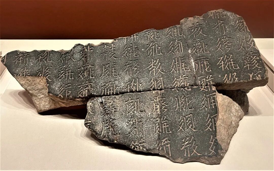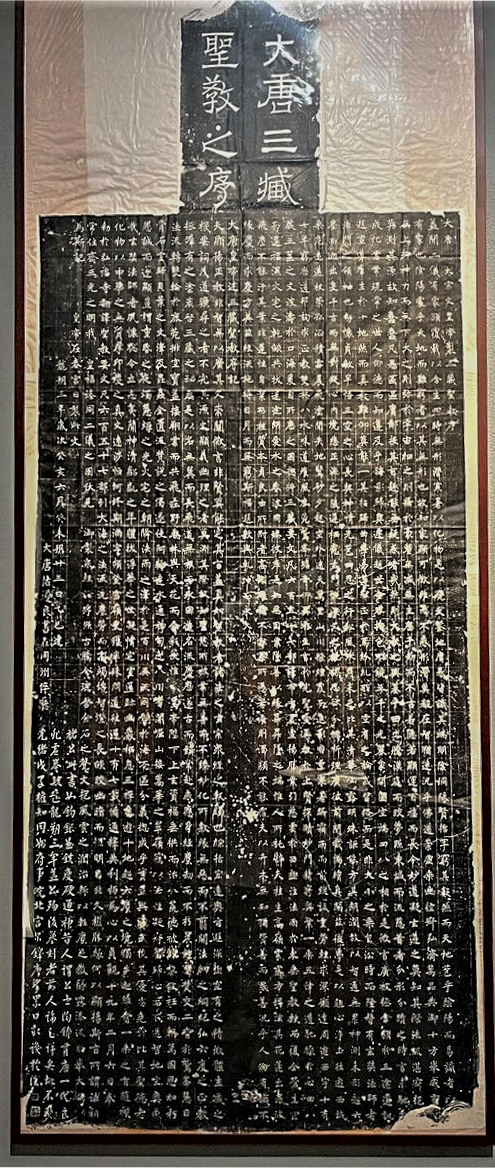 在西安慈恩寺大雁塔内,还有一块与展出的碑文内容完全相同的《雁塔圣教序碑》,推测可能是根据褚遂良书写的其他稿本摹勒而成,两者只是书法风格略有差异。