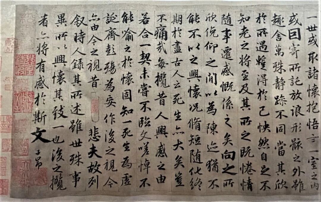 可惜的是,今天,我们并不能见到这份真迹。有一种说法认为,唐太宗入葬时,儿子高宗李治把他最爱的《兰亭序》作为陪葬品,一并埋入昭陵。李世民带走了《兰亭序》的真迹,留下了临贴的风尚,不同时代、不同版本的《兰亭序》摹本流传至今。