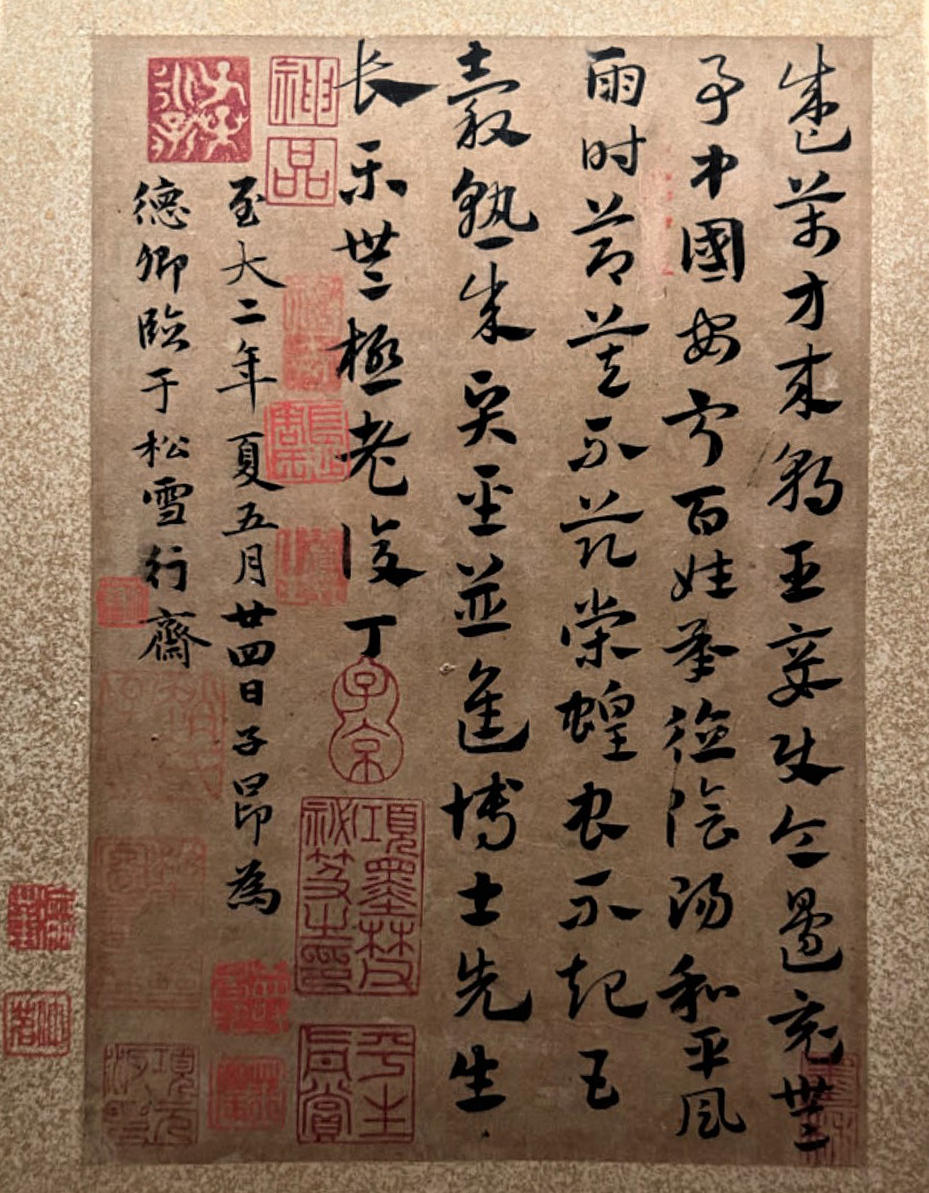 这幅信札流传有序,钤有赵孟頫“松雪斋”、“项元汴印”等明清名人多方印章,后流入故宫博物院,被鉴定为“名人墨迹,孤本,有历史价值,定为一级甲”。