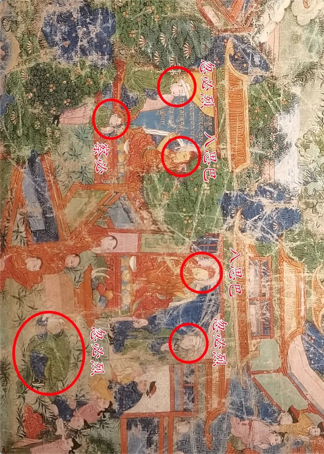 《八思巴圆寂图》之左上部:“八思巴圆寂”