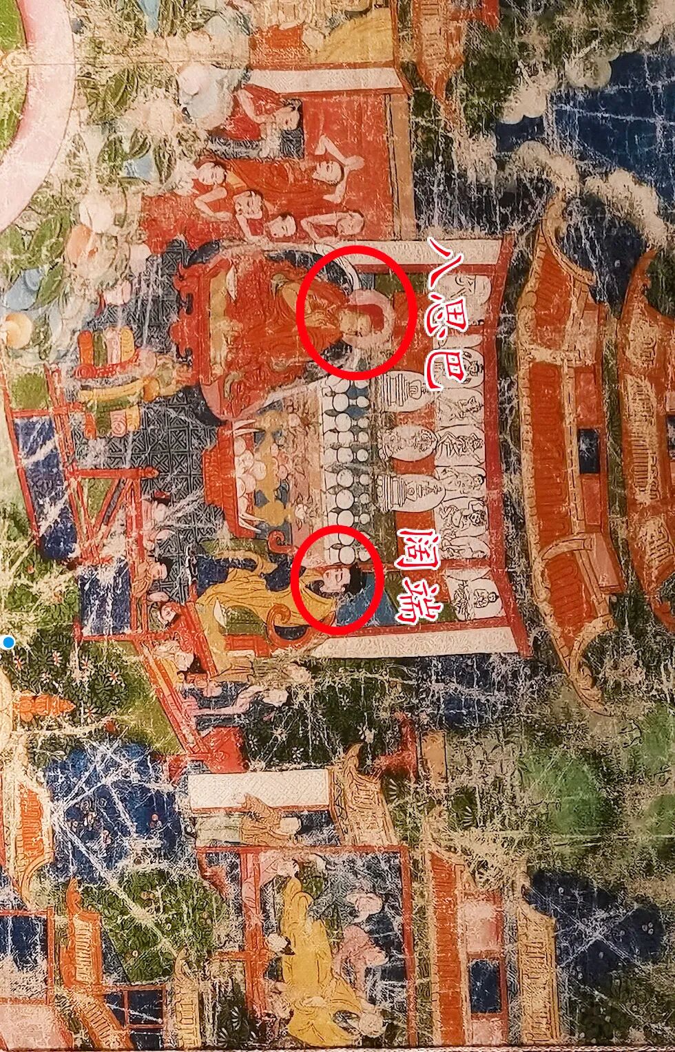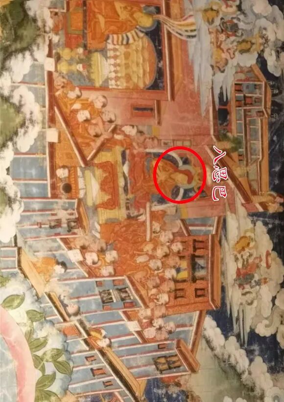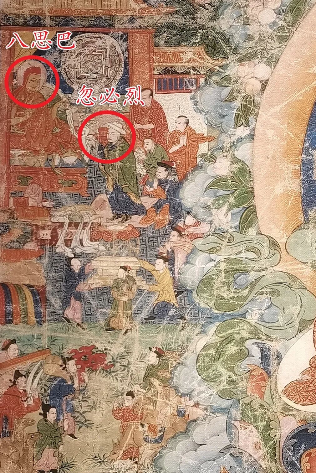 《八思巴首次谒见忽必烈图》之左下部:“八思巴为皇后灌顶”
