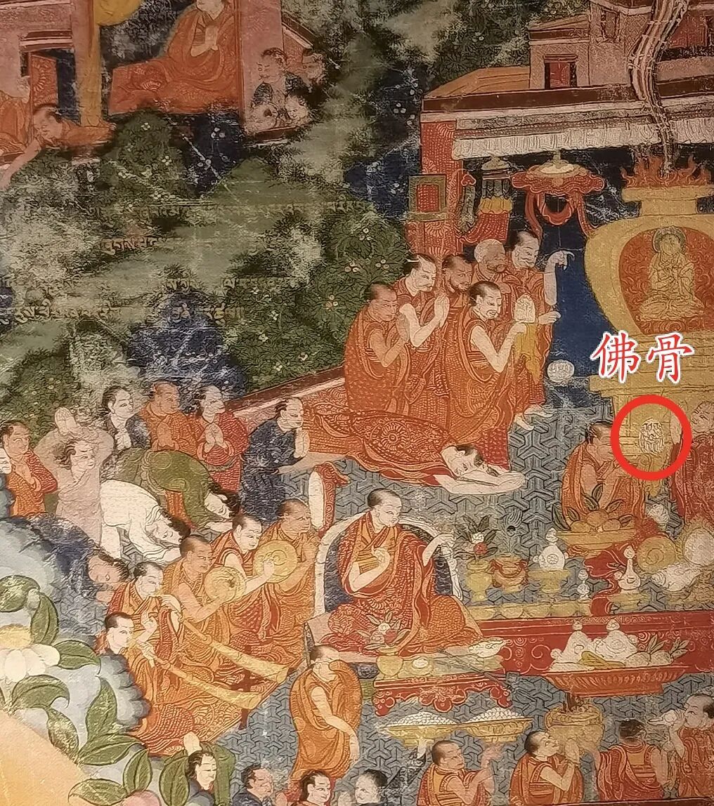 《八思巴圆寂图》之右中部:“八思巴火化遗体”
