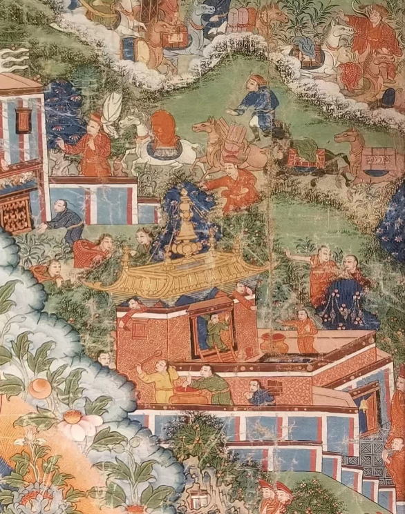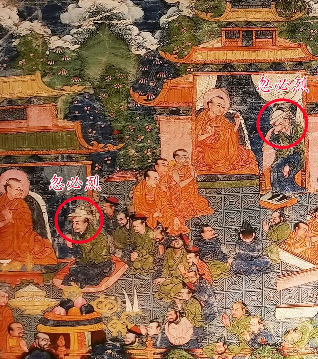 《八思巴受比丘戒图》之右中部:“八思巴与忽必烈邂逅”