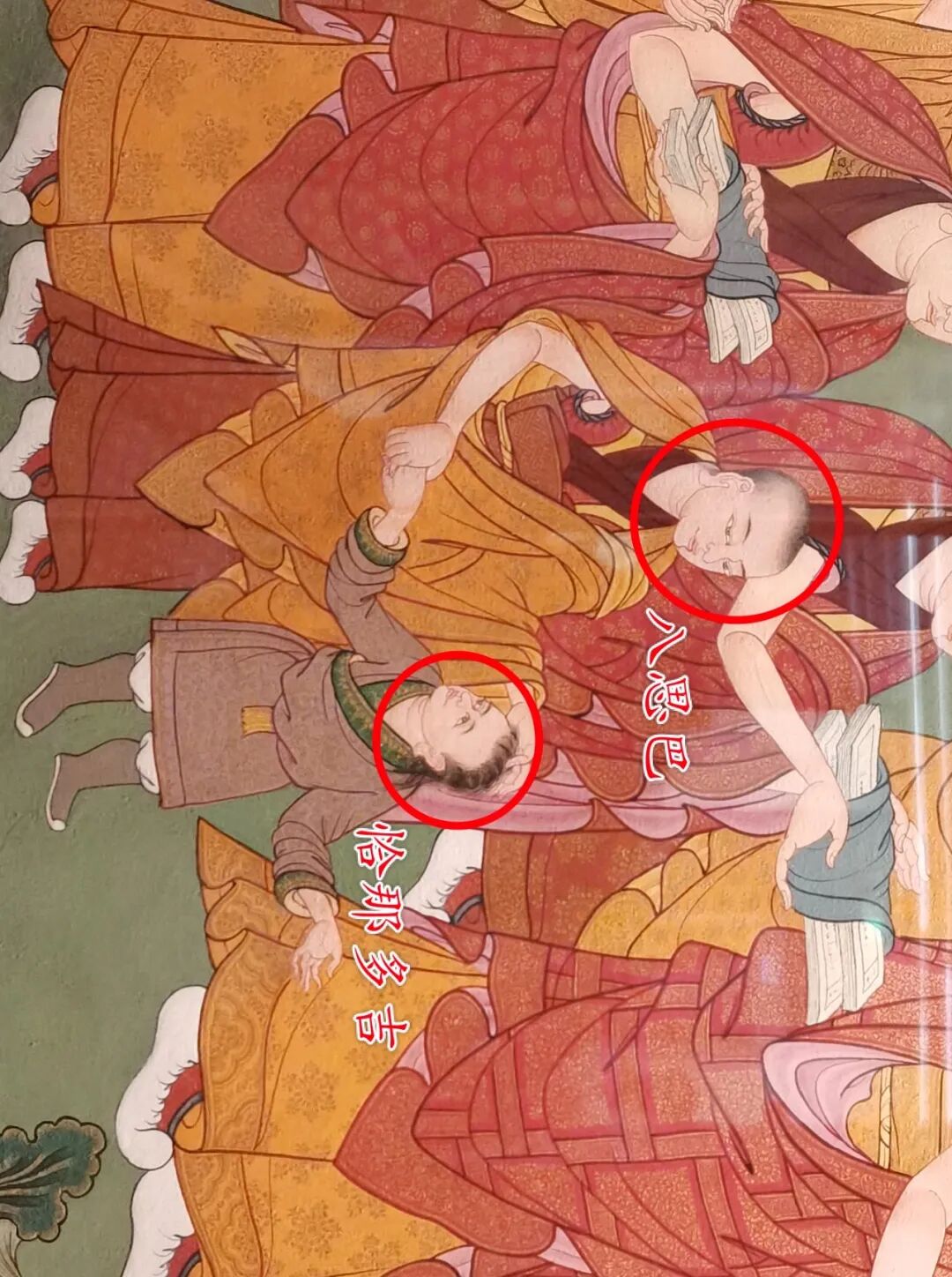 《萨班和八思巴赴西凉图》之右中部:“八思巴在大昭寺受沙弥戒”