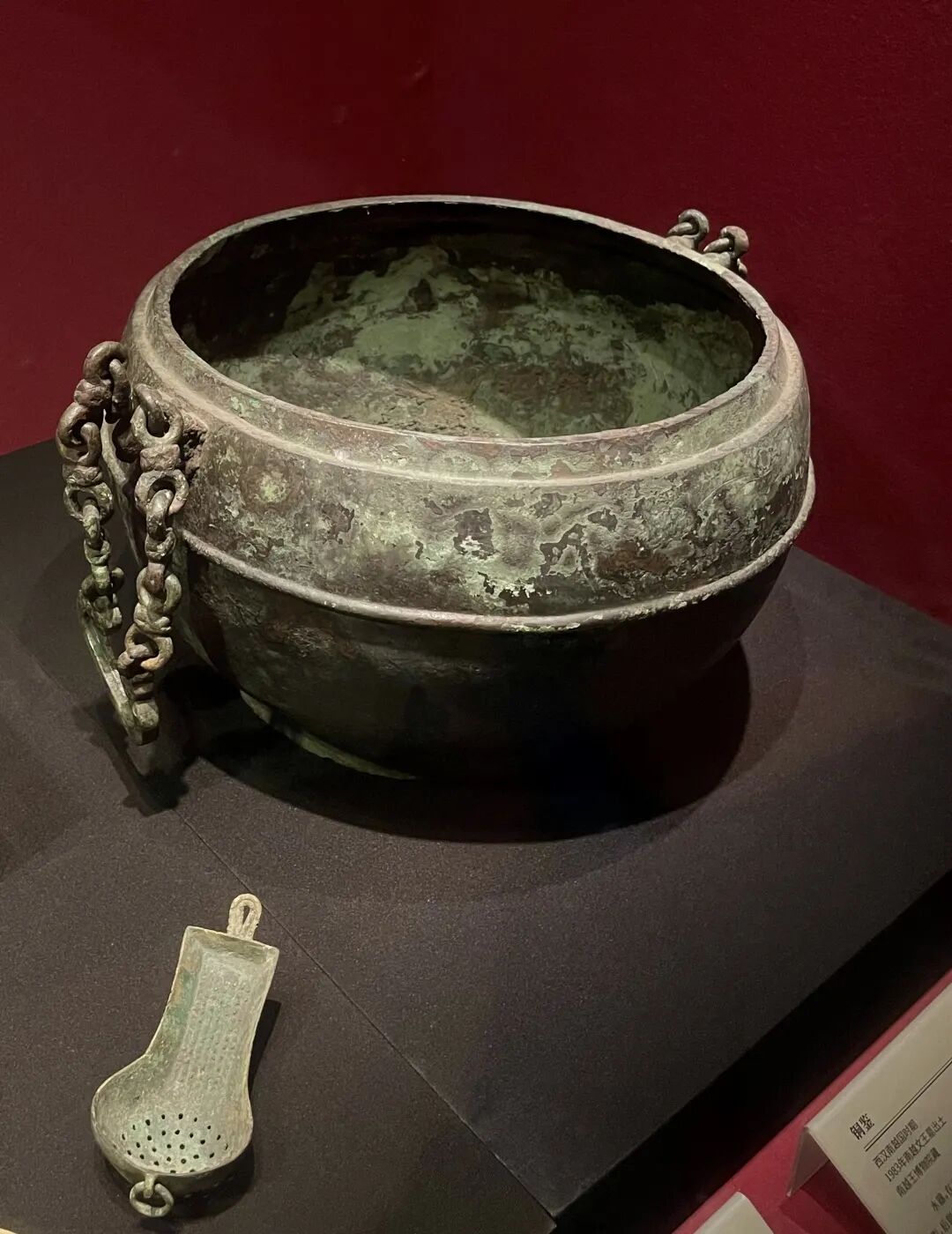 作为继承秦帝国南疆遗产的南越霸主,赵佗给岭南地区带来了中原的先进技术与制度。此次展出的一件刻有容量铭文的铜鼎就是这种继承发展的有力见证。这件器物盘口上有“重十六斤,容三斗大半斗”的铭文,实测其一升折合今 197.655 毫升,与汉代一升合今 188~200 毫升的标准相符。