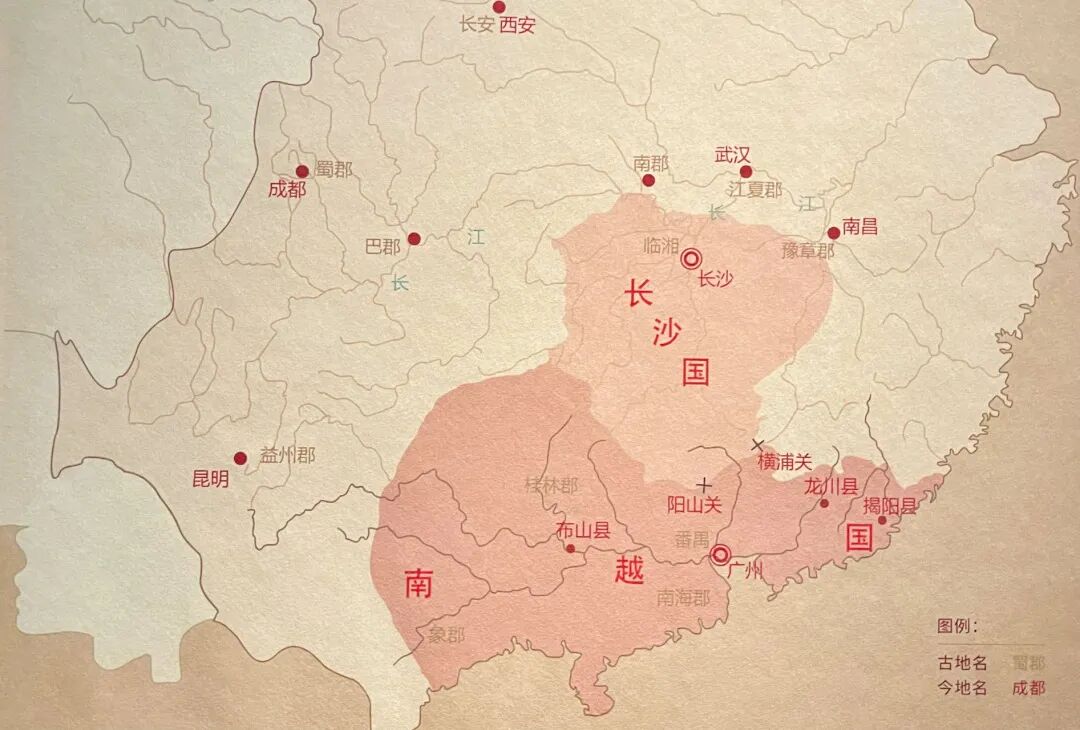 赵佗是钜鹿郡真定县人,随参加征服岭南的秦军来到岭南,后凭借功绩当上龙川县令。秦末战乱,南海郡军事长官任嚣临死前嘱咐他颇为欣赏的赵佗:“番禺(广州的古称)负山险,阻南海,东西数千里,颇有中国人相辅,此亦一州之主也,可以立国。”赵佗果然不负期望,出兵吞并了岭南诸郡,自立为南越武王,开启了长达93年的南越国统治。在最鼎盛时期,南越疆土横跨东西万余里。