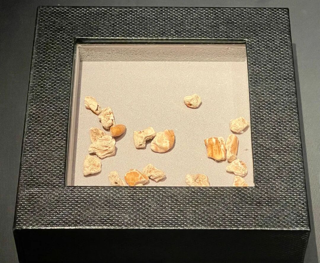 在汉代室内熏香的习俗十分流行,南越国也存在同样的风尚。南越王墓的这件四连体铜熏炉造型独特,盒身和盒盖平面成“田”字形,盒内四个小盒互不连通,可以同时放置多种香料,体验复合香型。作为一款高档室内香薰,南越熏炉选择燃用海外进口产品——乳香主要产于阿拉伯地区的红海沿岸,南越王墓发现的乳香证明它早在西汉初期就已远渡重洋传入中国,成为南越人精致生活的一部分。