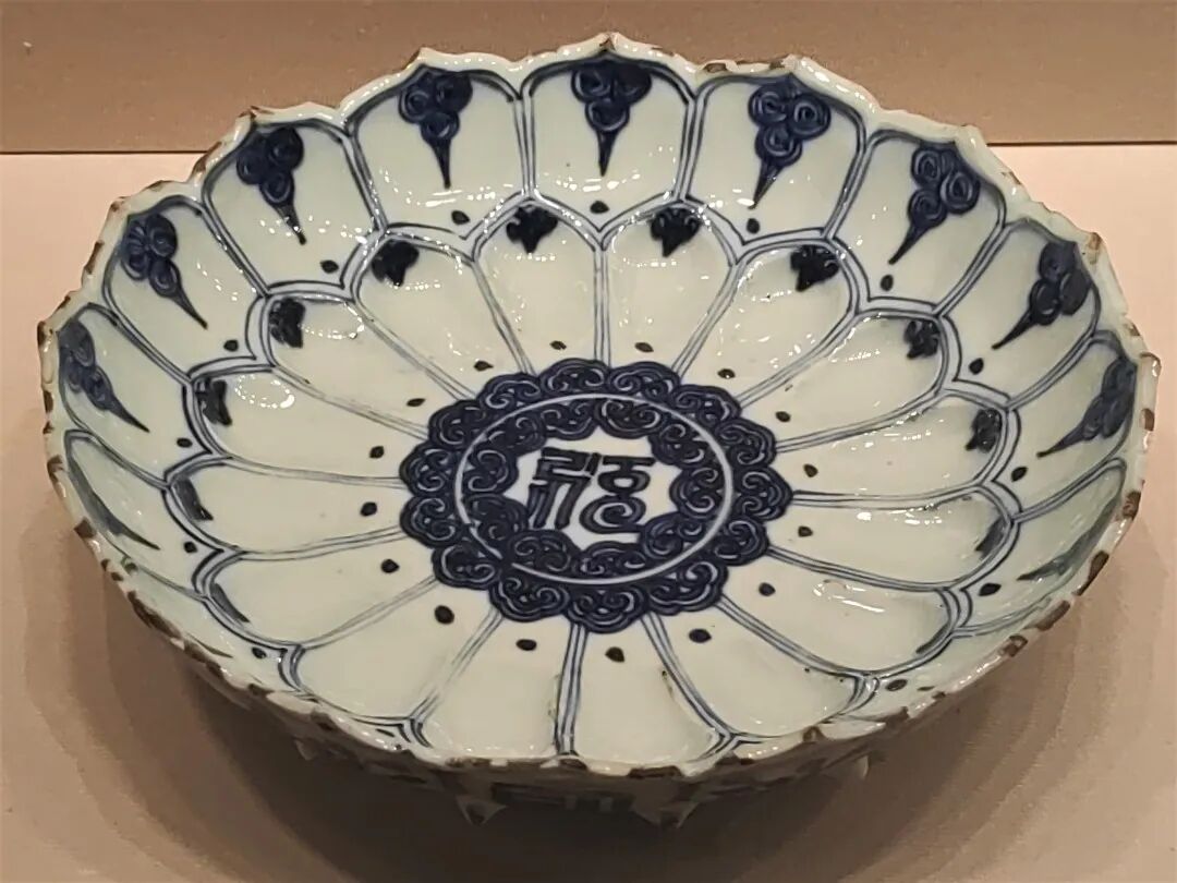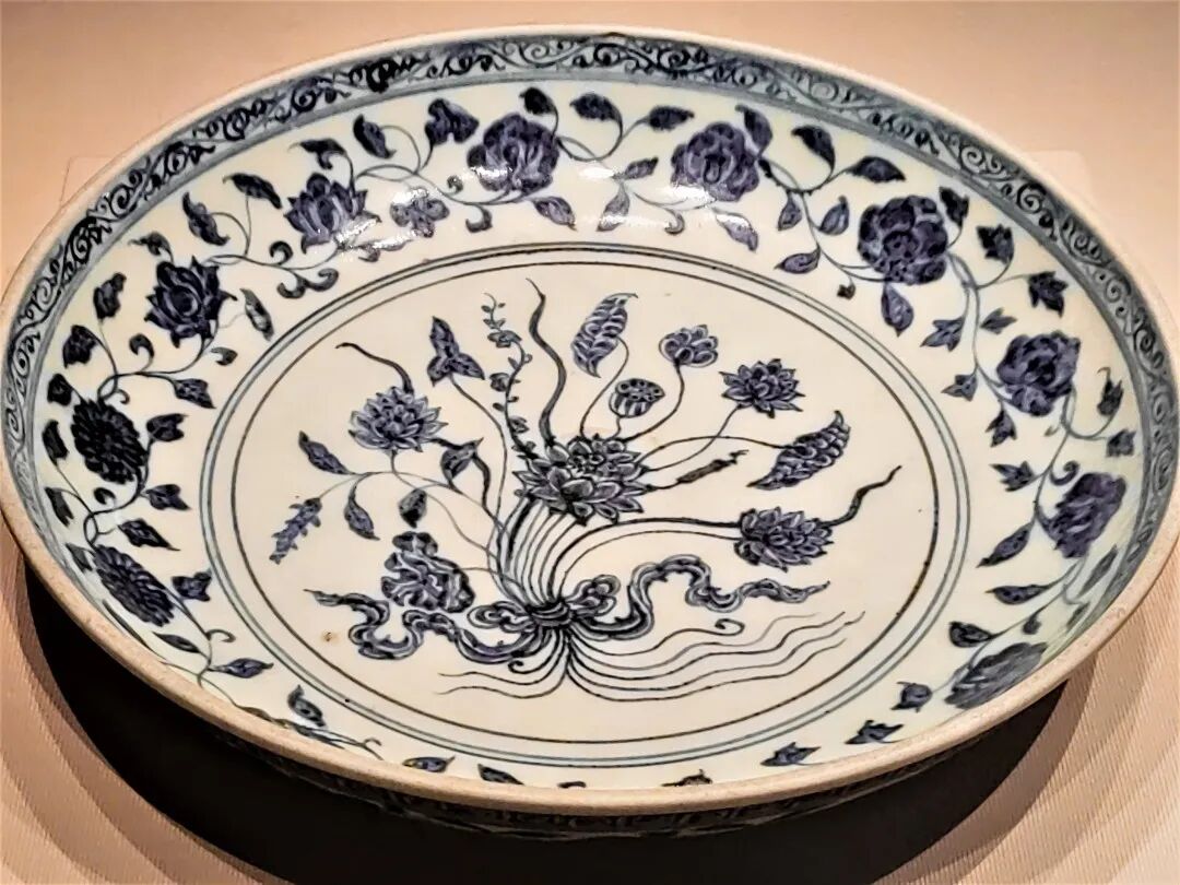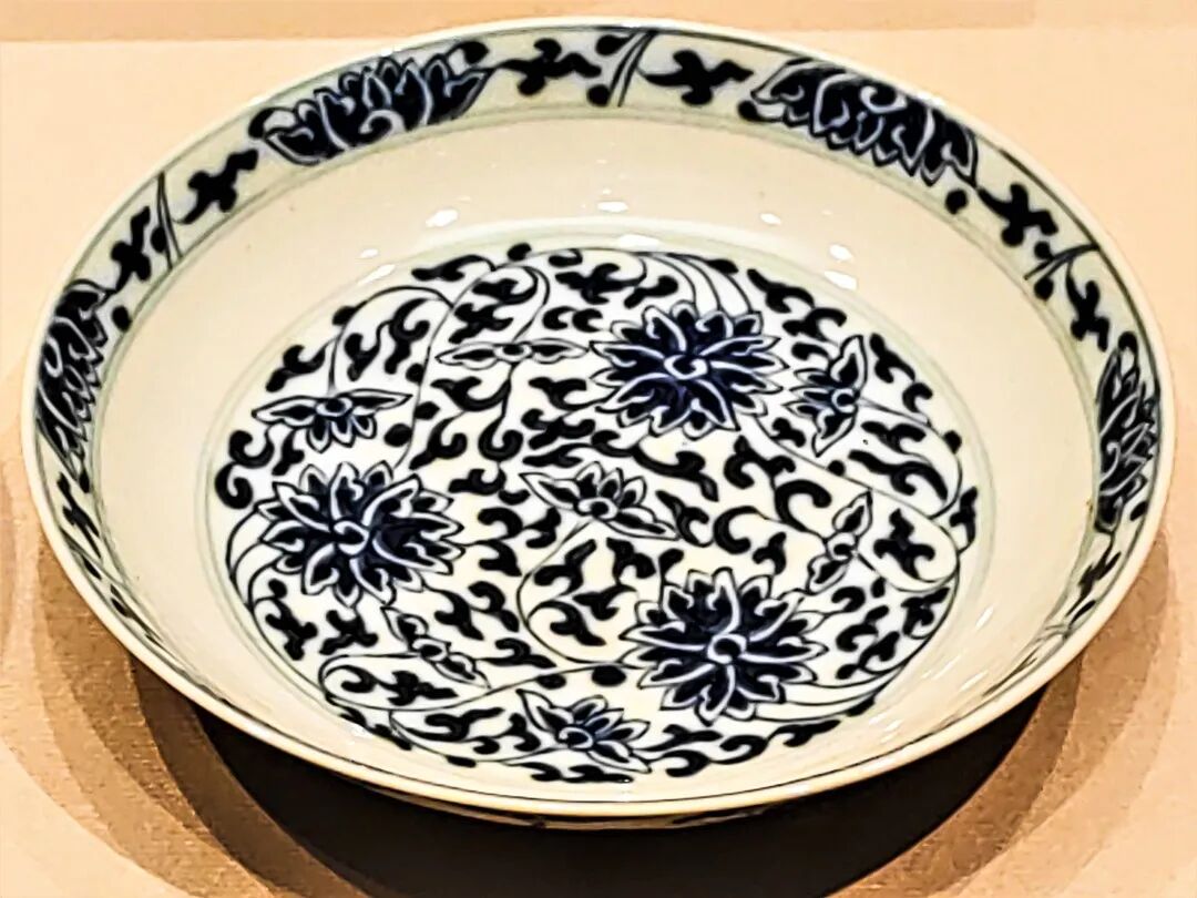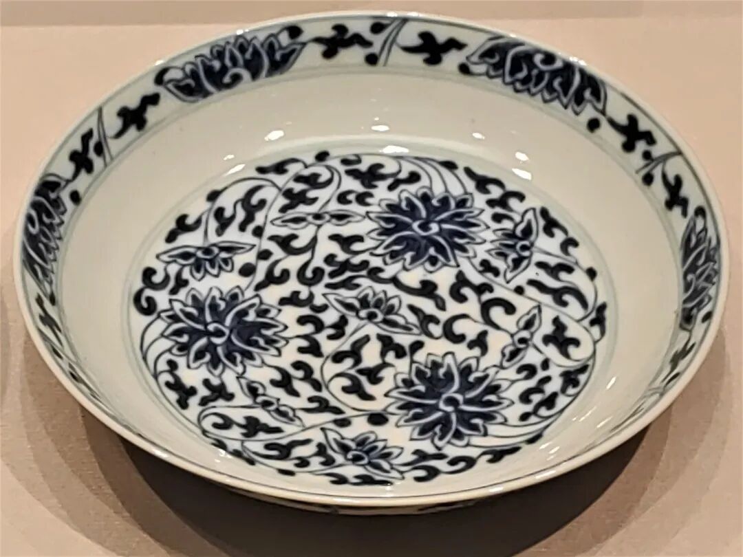 此外,人们还喜欢玩儿“谐音梗”。明代永乐、宣德时期的瓷器中,最流行一种“把莲纹”,顾名思义,就是把数把莲花画在一起,寓意“一把清廉”。