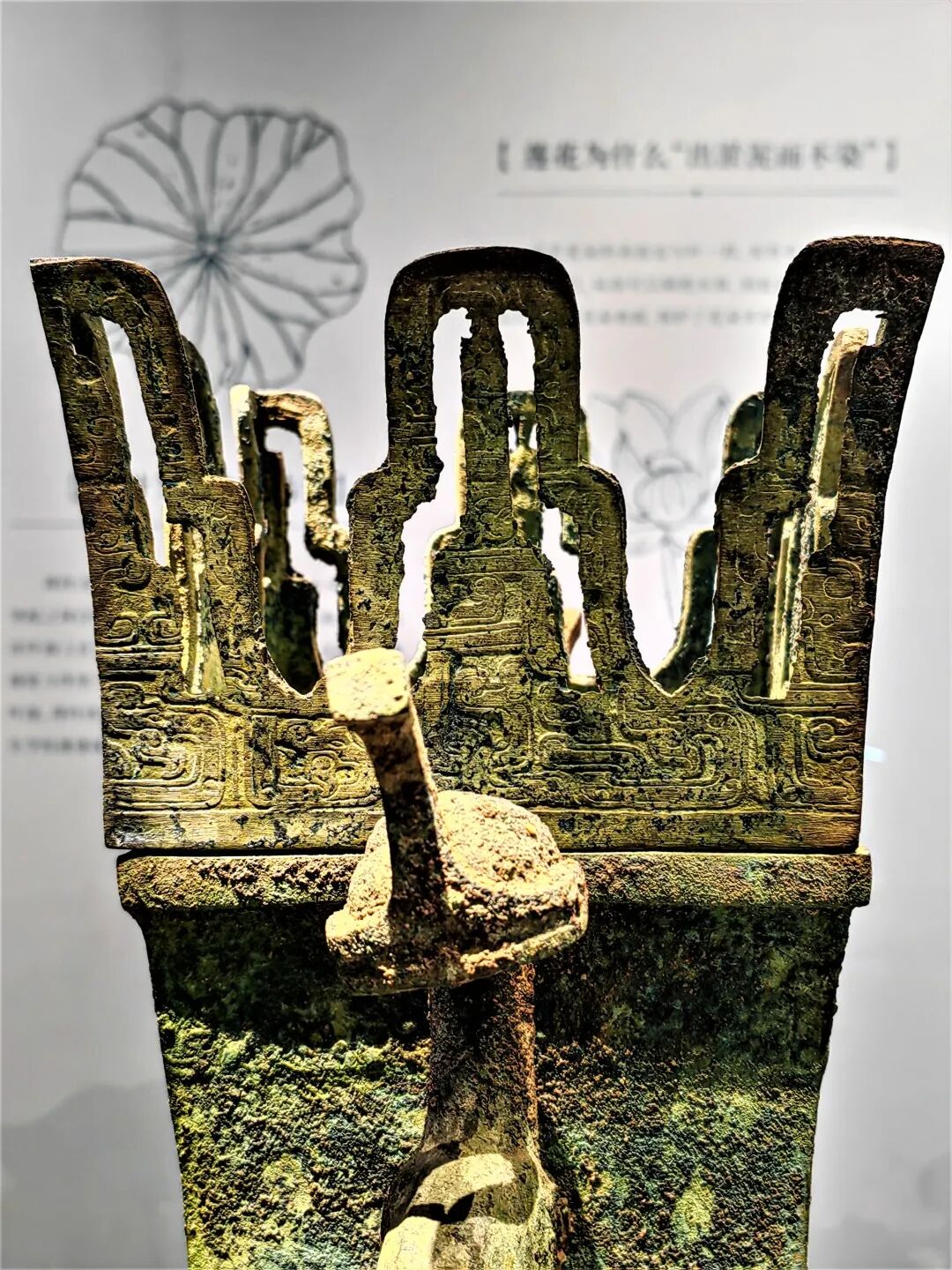 《诗经》中,郑国是一个“山有扶苏,隰有荷华”的地方。那里的池塘里开满了荷花。同时郑国也是中原文化和南方的楚文化交汇的门户。在庄严肃穆的青铜器中第一次出现了莲花,一般认为这是受到了南方楚文化的影响,表明春秋战国时期黄河文明和长江文明交汇中精神世界的空前活跃。