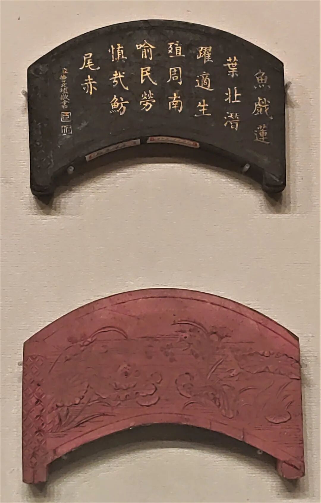“江南可采莲,莲叶何田田。”秦汉时期的人们延续了对莲花的喜爱,尤其是基因突变产生的并蒂莲,作为祥瑞的象征,获得“瑞莲”的美名。成都地区以出土汉画像砖闻名。这些汉代的“连环画”生动地展现了汉代民间的物质文化生活。本次也展出了两方东汉的画像砖:莲池收获弋射图和渔猎采莲图,显示出莲花已深深融入在汉家人民的日常之中。
