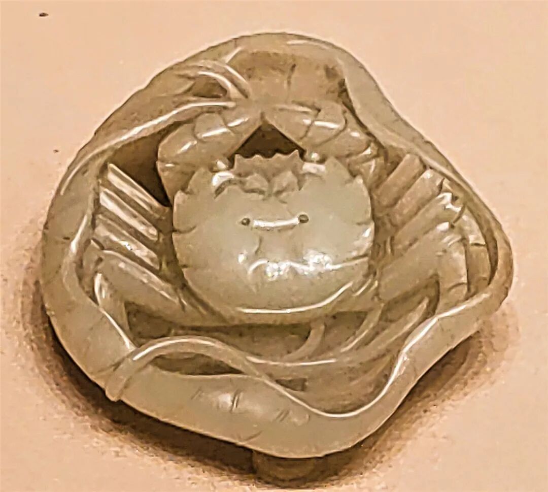 清莲叶螃蟹玉雕