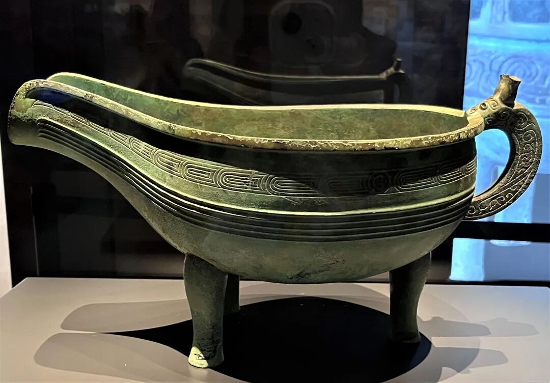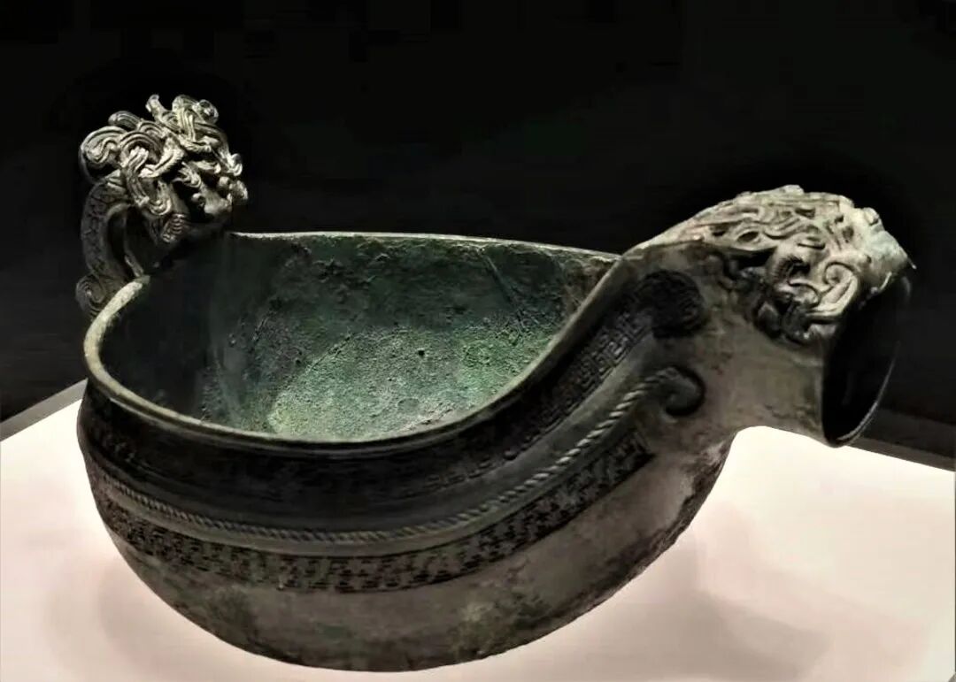 值得一提的是,我们所熟知的成语“秦晋之好”,与匜这个器皿就有些关系。据《左传》记载:“奉匜沃盥,既而挥之。怒曰:‘秦、晋匹也,何以卑我!’公子惧,降服而囚。”春秋时期,晋文公重耳的妻子怀嬴出身秦国,非常贤惠,捧着盛水的匜倒水给重耳洗手,然而重耳洗完之后,将沾着水的手乱挥。怀嬴认为重耳这一举动是将其视为仆人,非常气愤地表示:“秦国和晋国势均力敌,你为何如此看不起我?”重耳吓坏了,赶紧除掉外面的服饰,把自己绑起来以表谢罪。可见当时的礼仪是多么重要,在夫妻之间的生活小事上都很注重礼仪。后来,重耳在秦穆公的帮助下当上了晋国的国君,并让太子娶秦国的宗女,父子两代都和秦国联姻,遂成就佳话“秦晋之好”。