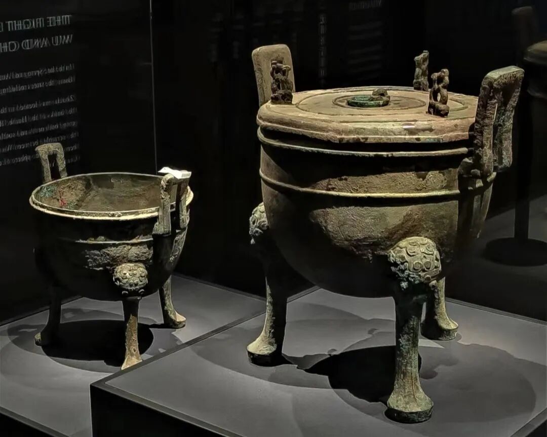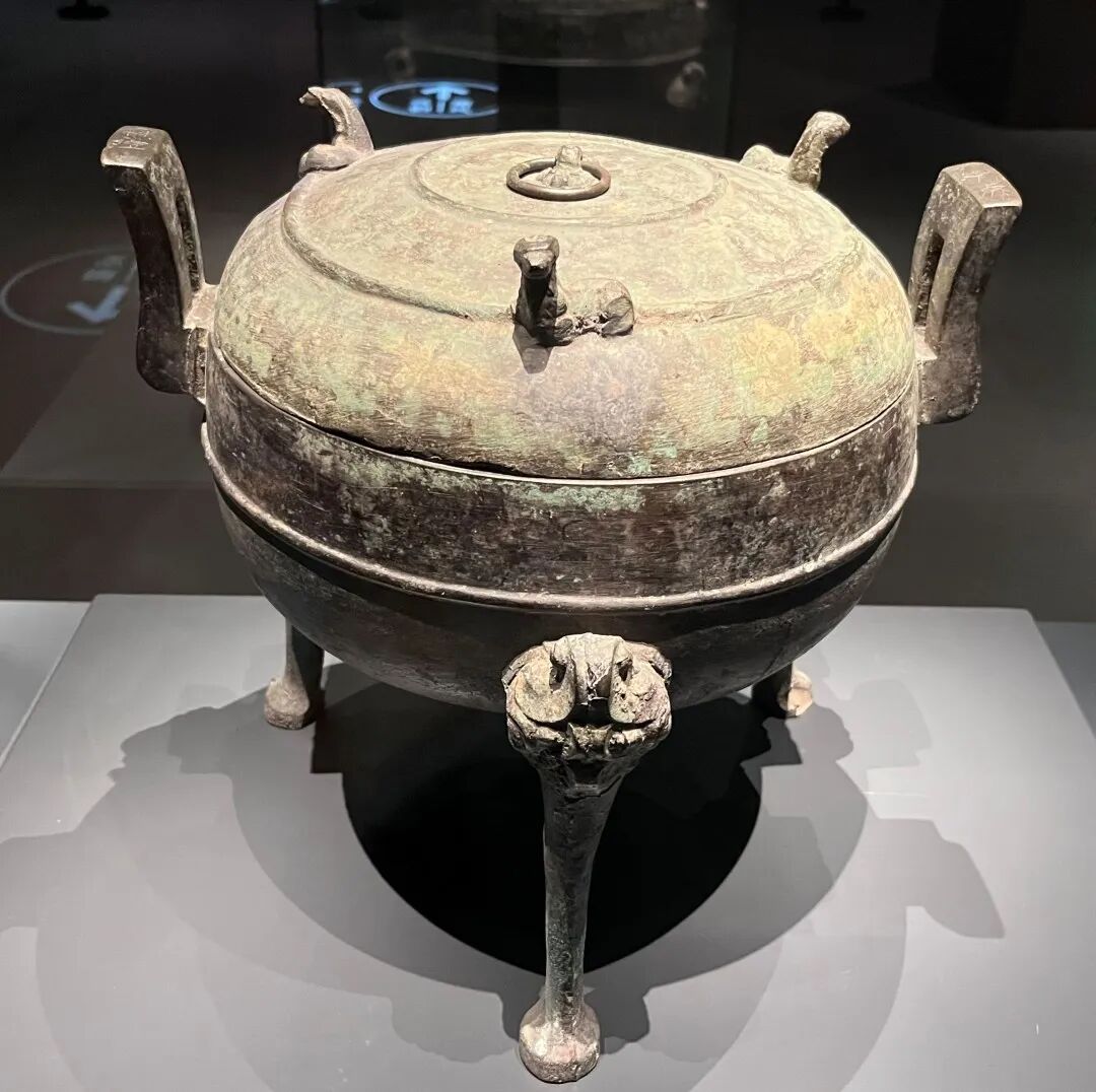 在宴厅中,一般会放几只体型相当大的镬鼎,镬鼎相当于今天的大锅,主要是用于烹煮大型动物,如牛、羊、猪等。根据《周礼》记载,镬鼎依据形制大小分为牛镬、羊镬和豕镬。镬鼎气势磅礴,无声地昭示着主人的威严与高贵。楚文化博物馆中能看到许多镬鼎,如蔡侯盖鼎、勾连云纹铜鼎、集脰太子鼎等,这些镬鼎的出土,既展示了这一区域出土墓葬的规格之高,同时也彰显了墓主人生前的富足与豪迈。