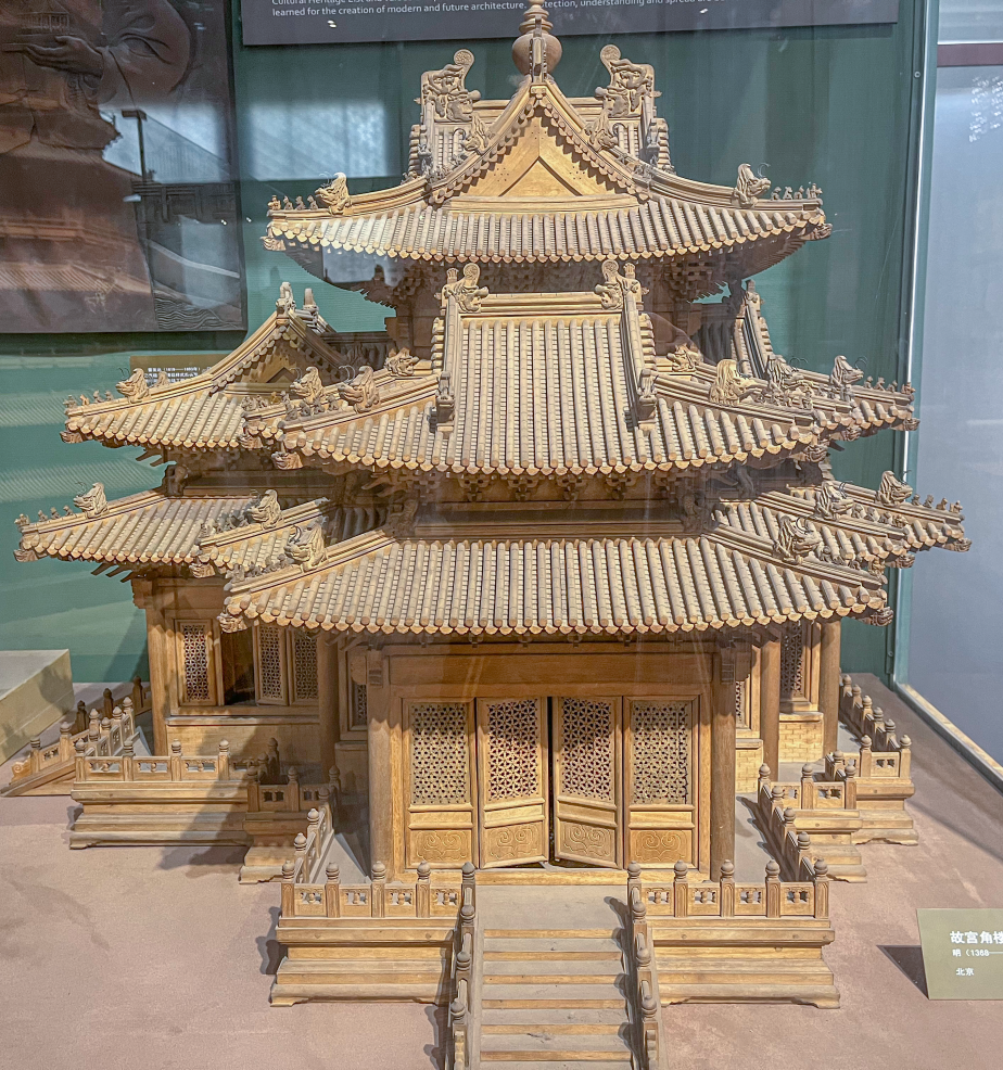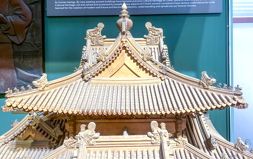 古建博物馆为我们展示了中国建筑的发展历程。古人在用火的过程中发现,泥土被火烘干具有变硬的性能,这为以后瓦的发明奠定了基础。我们常说“秦砖汉瓦”,但其实秦朝的制瓦技术已十分发达。2013 年考古工作者在陕西发现了栎阳古都遗址,是先秦时期秦献公迁都的旧址。刚开始发掘就出土了大型的筒瓦以及罕见的槽瓦。见微知著,这些瓦构件足以使我们对秦朝的恢弘建筑产生联想。