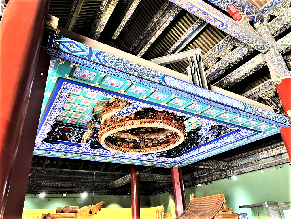 馆内陈展的藻井,并非古建馆建筑自身的原装构件,而是源于北京隆福寺。始建于明景泰三年(1452 年)的隆福寺地处故宫东北,曾是京城唯一的番(喇嘛)禅(和尚)同驻的寺院。
