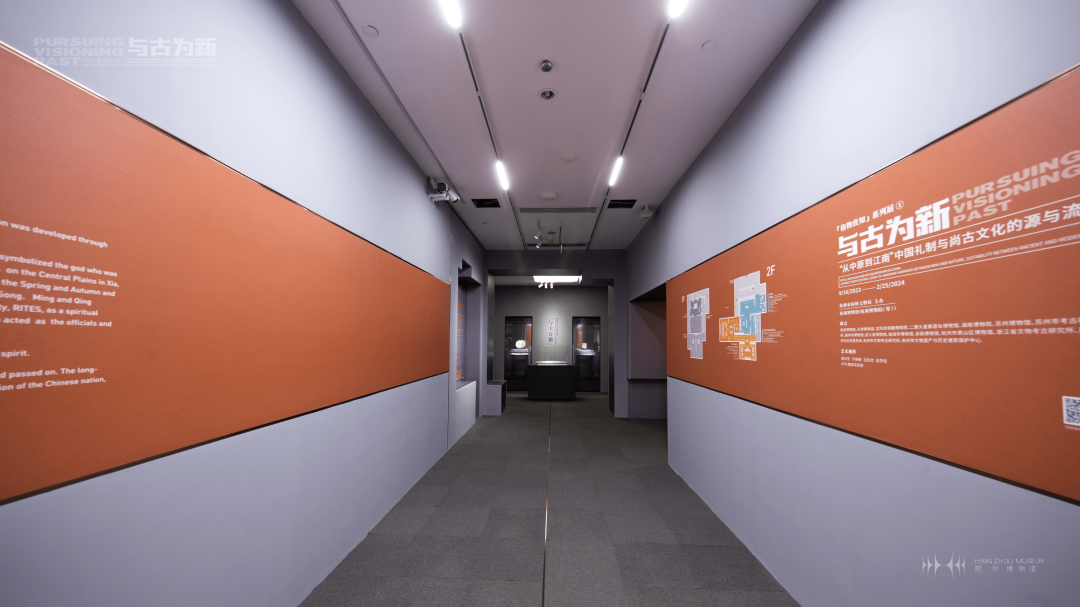 3、《“与古为新——‘从中原到江南’中国礼制与尚古文化的源与流”》为迎亚运特展,位于杭州市博物馆南馆特展厅,展期自 2023 年 9 月 16 日至 2024 年 2 月 25 日。分为五个单元,“尊古:兴于王政的仪礼与秩序”“思古:精英的收藏与考释”“怀古:寄托于物的尚礼与幽思”“水常流”与“景常新”。为不同单元设定的视觉场景,起承转合,营造充满诗意的沉浸式体验与意象。