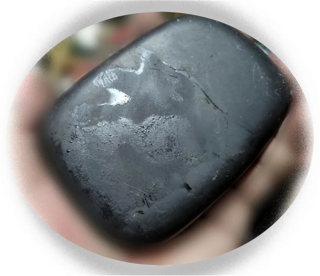 老坑石。砚形如螺蚌,螺身的砚堂可磨墨,螺口的涡形池可用作舔笔。