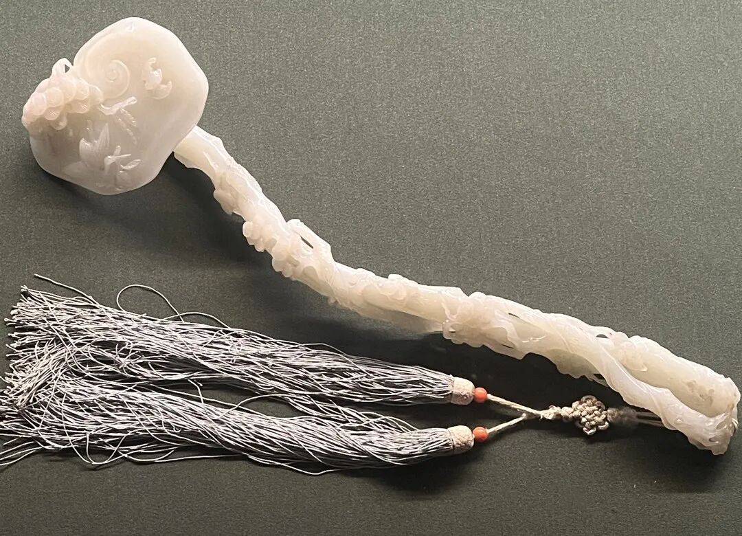 如意是一种象征祥瑞的器物,柄微曲,由古之挠痒工具、前端作手形的爪杖发展而来,其材质多样,有竹、木、铜、金、玉、石等。如意在清代时可赏玩,可陈设,可做礼品,无论宫廷、王府还是民间都有使用。