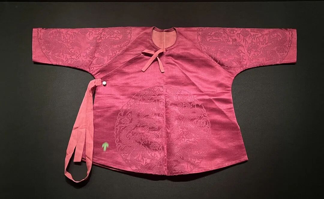 枣红色团龙纹暗花缎小夹袄 清代宫廷子嗣婴幼儿时期的便服。