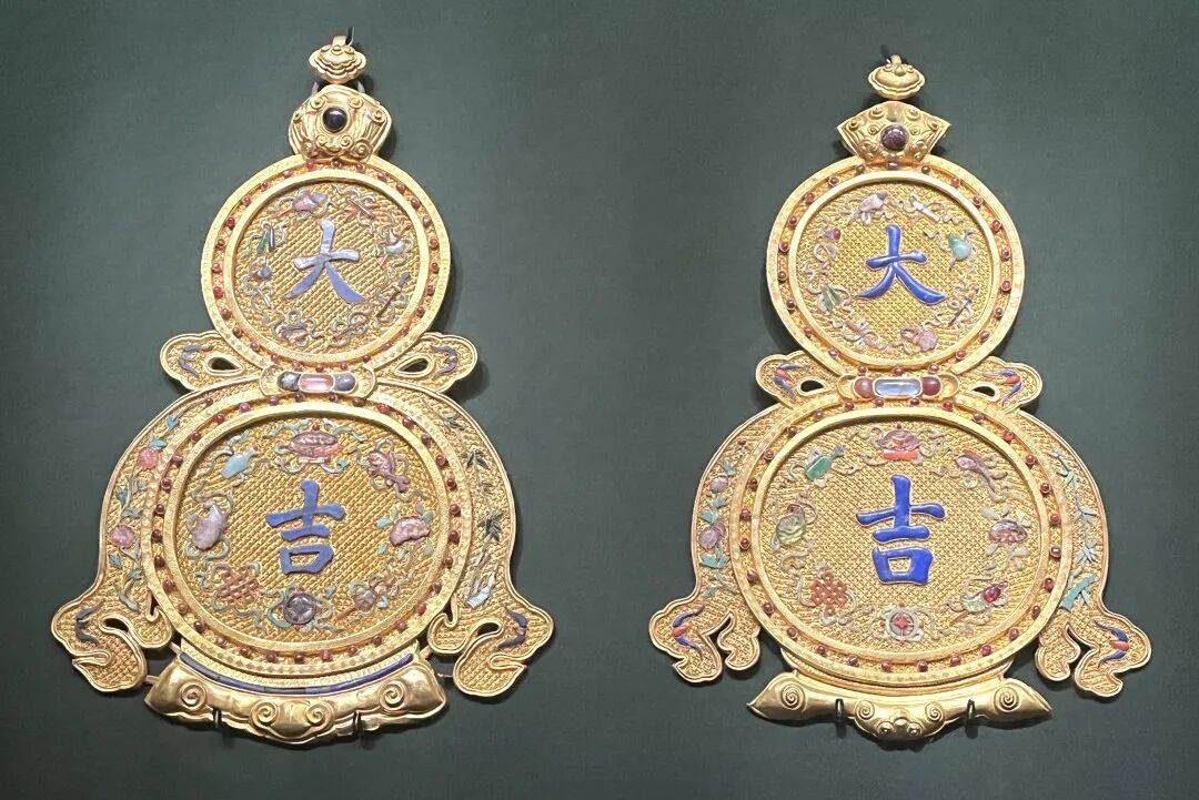 除了写“福”、赐“福”之外,皇子、公主穿用的衣服,佩戴的饰品,室内的陈设中,都有许多“福”字,或是寓意吉祥的“蝙蝠”“葫芦”等纹饰,谐音为“福”。