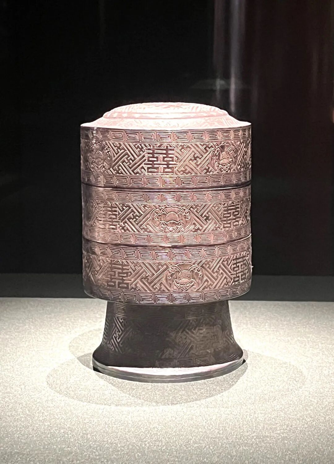 这件银质食盒上饰有“喜”字,应该皇室成员婚礼时所用。
