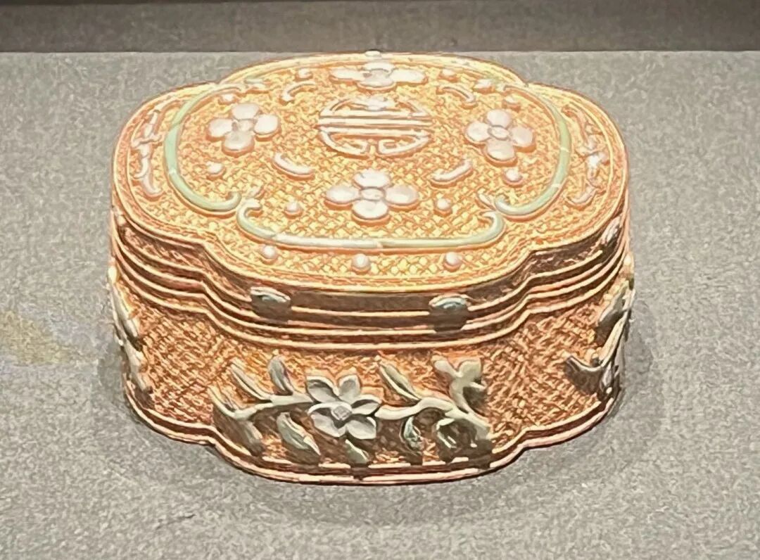 铜镀金嵌料石盒,用来收纳小件首饰或者其他的小物件