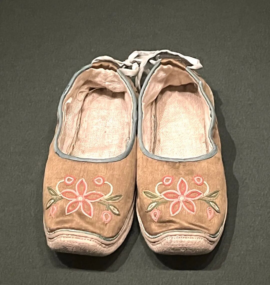 清嘉庆 寿康宫中发现的秋香色缎盘绦花卉纹小皂鞋
