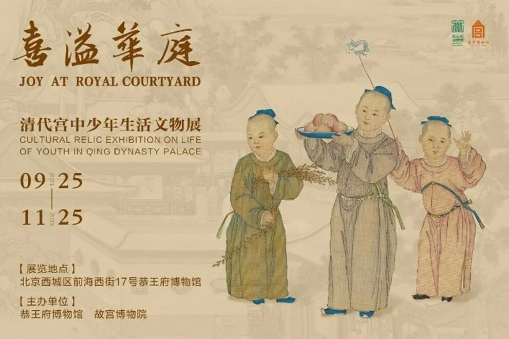 9 月 25 日,故宫和恭王府博物馆联合推出的“喜溢华庭——清代宫中少年生活文物展”在恭王府博物馆乐道堂开幕,120 余件精美文物共分为五个篇章:天伦、美器、祈福、崇文、修武,为我们揭秘了深宫之中那些少年的幼时往事。