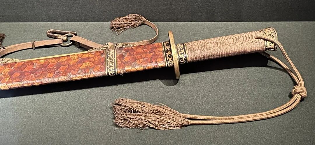 铁花线枪 铁錾花柄金桃皮鞘白虹腰刀