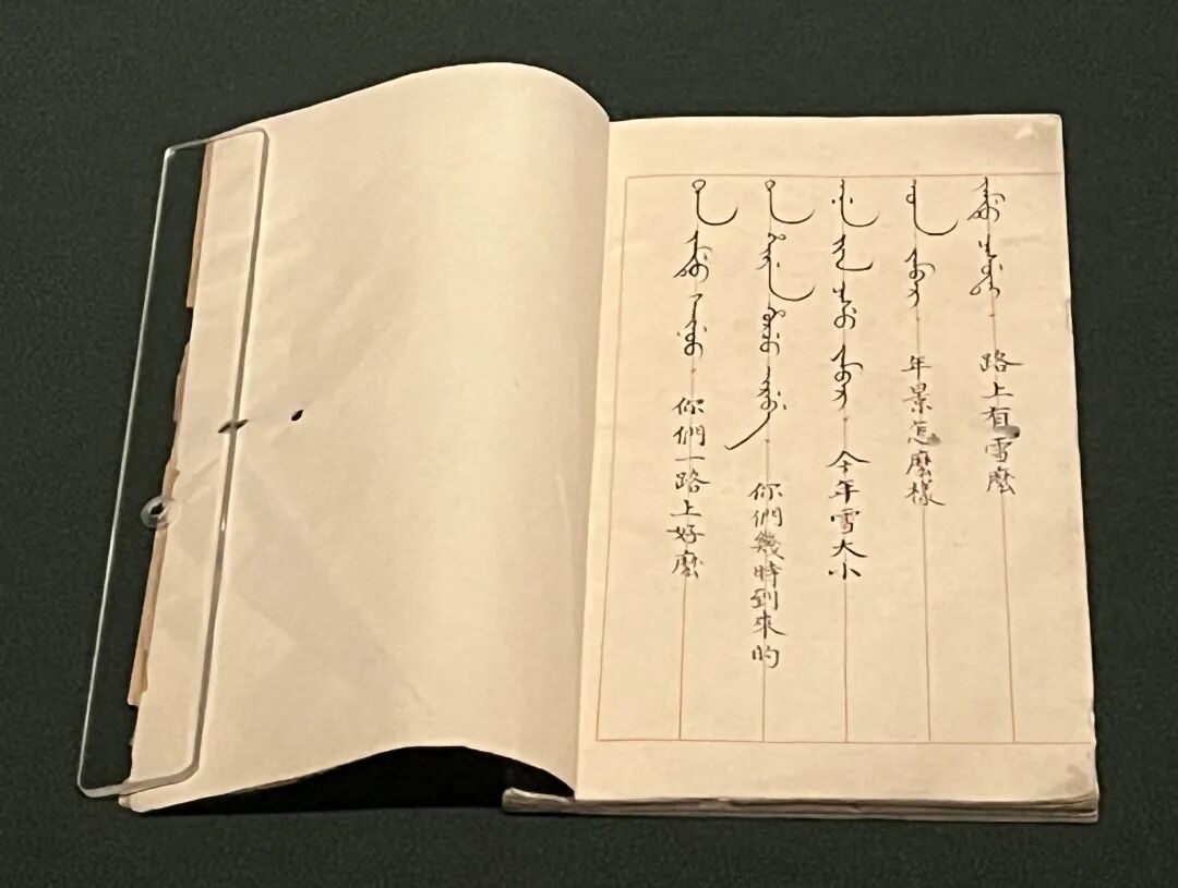乾隆皇帝学习蒙古语言的手册,手册分上下两行,上行采用满文字母转与蒙古语,下行为对应的中文翻译。