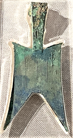 平肩弧足空首布上的铭文清晰可见