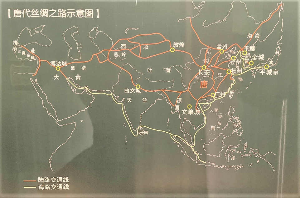 唐朝丝绸之路示意图