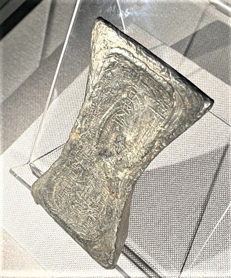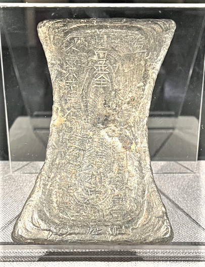 到了唐朝,就形成了我们所说的唐朝银铤。银铤这个称呼源自于它的造型,那时人们习惯将长且端直的东西叫“挺”,木质的就是“梃”,材质为竹子的就是“筳”,金属的便是“铤”。相信大家只听名字就能想到它的形状。唐朝的银铤除了长条的笏形以外,还有一种类似于船型的,束腰,两头翘起。当时的银铤通常是能够作为标准计数单位的,一铤的重量为五十两。