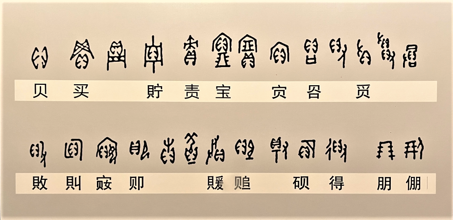 除海贝外,还有各种仿制贝,如石贝、骨贝等。到了商朝,青铜冶炼技术有了很大进步,产生了青铜铸造的贝币。贝币是我国最早使用的货币种类,因此和钱财有关的汉字,多取“贝”字旁,如“货、财、贸、贱、贷、贫、账”等。商周时期的甲骨文、青铜器铭文中有许多赐贝、赏贝的记载。如西周时期青铜器亢鼎铭文记录了大保用贝向样亚购买大珠。