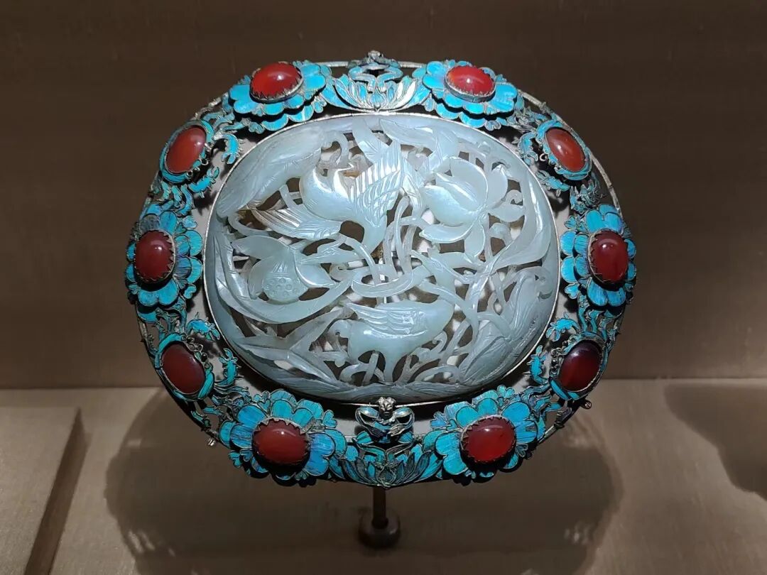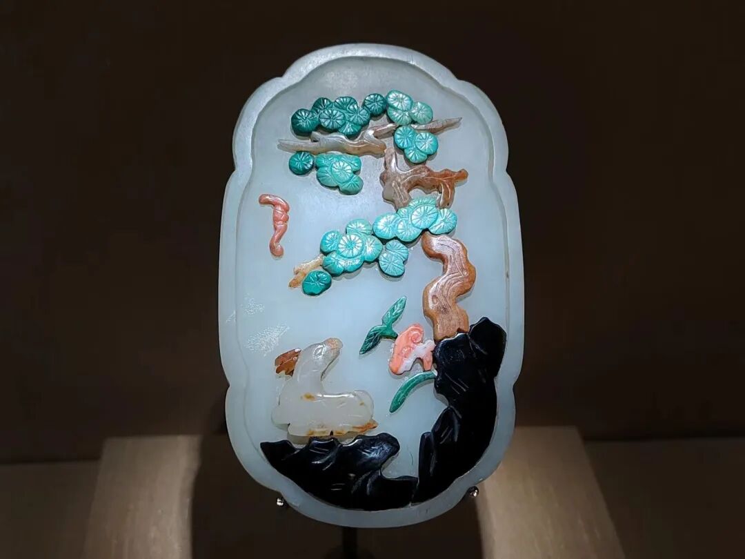 镶嵌,是将一个物体通过粘接、包裹、内嵌等形式与另一个物体固定为一体的装饰工艺。玉作为一种备受珍视的美石,常与其他珠宝、贵金属、名贵木材等以镶嵌的方式组合成一件工艺品。镶嵌工艺上古时代就已出现,不同时代各具特色。