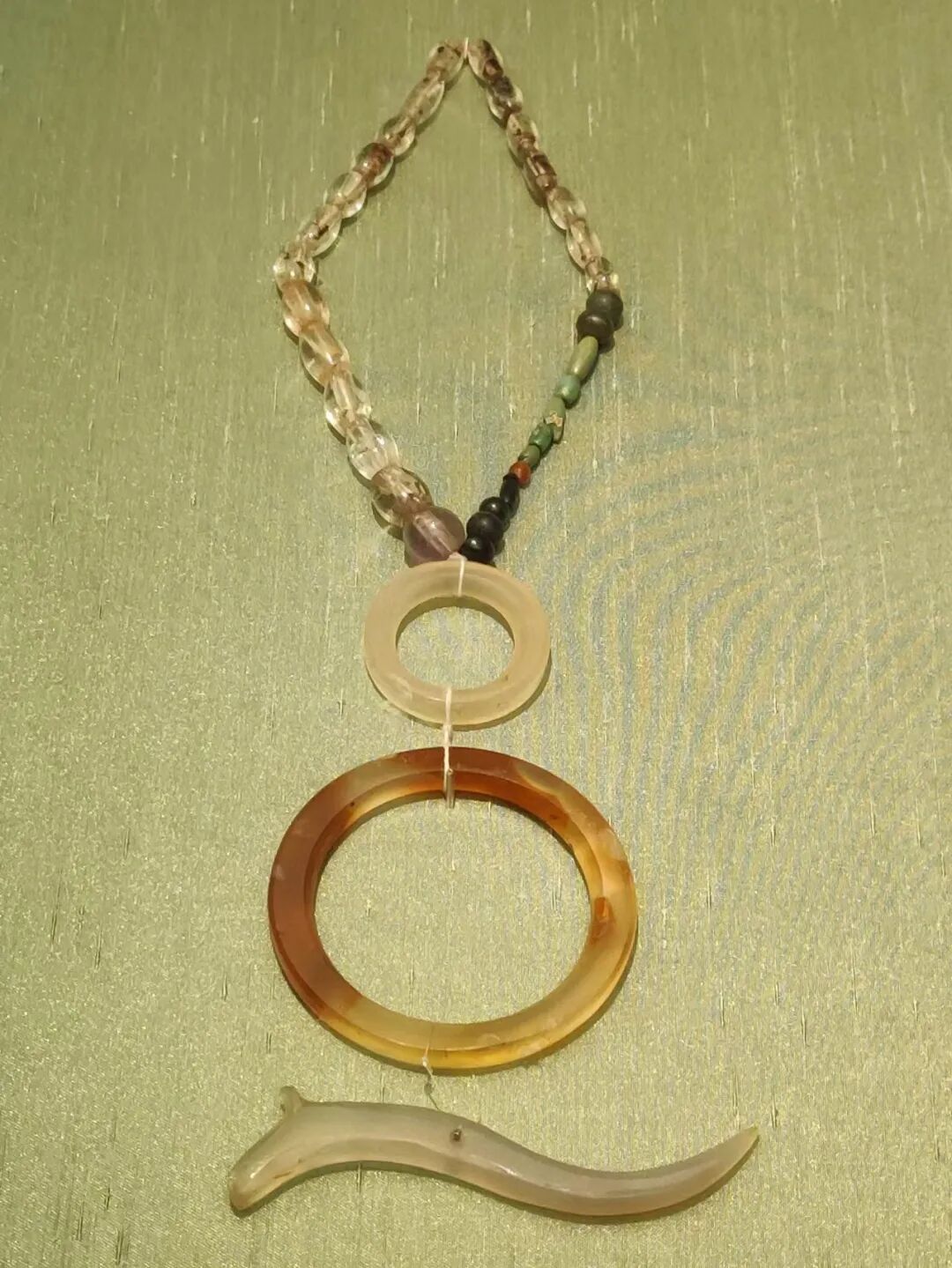 玉石因品相温润、色泽纯净,被认为凝聚天地精华,成为备受人们喜爱的装饰品。其实,距今 9000 多年的新石器时代早期,先民已经能够将玉和石分开,制作成装饰品了。经过漫长的发展历程,玉器分布广泛、数量繁多、品类齐全、工艺精湛,不同时代、不同种类的玉器还被赋予了信仰、礼仪、人格、思想、风俗等社会内容,形成了独特的玉文化。