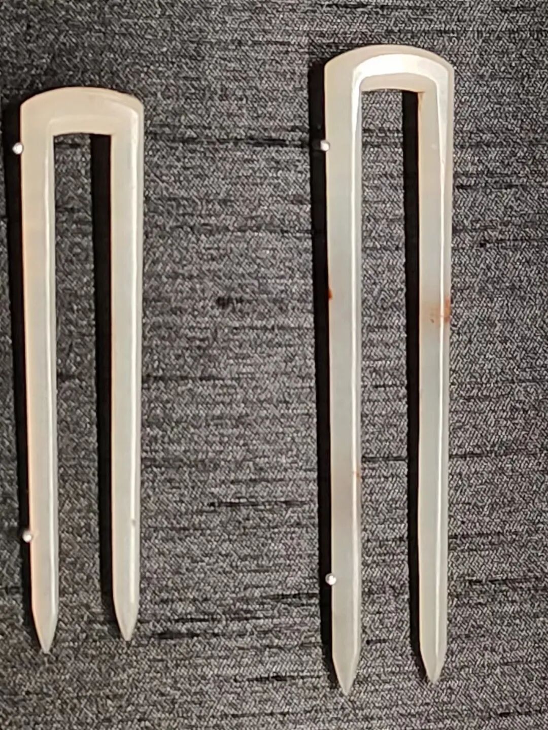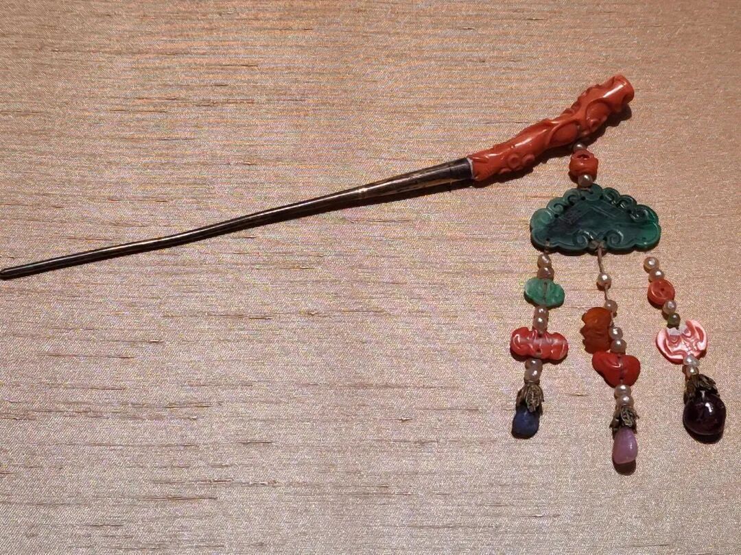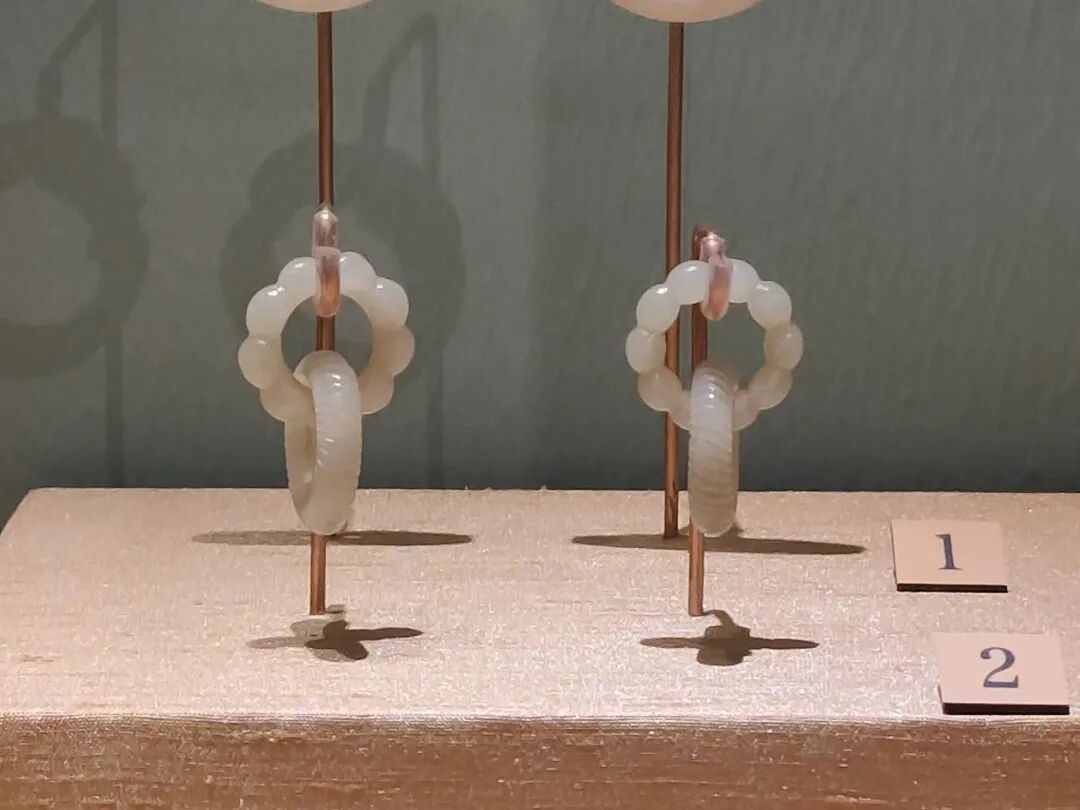 钗是束发用具,单股为簪,双股为钗。隋代的钗由笄演化而来,改玉笄的单支为双支是造型的更新与飞跃,且在形象上达到了对称美。玉钗比玉笄增加了功能的实用性,因双支插入发内阻力加大而更为牢固。隋代玉钗开唐宋玉钗之先河。
