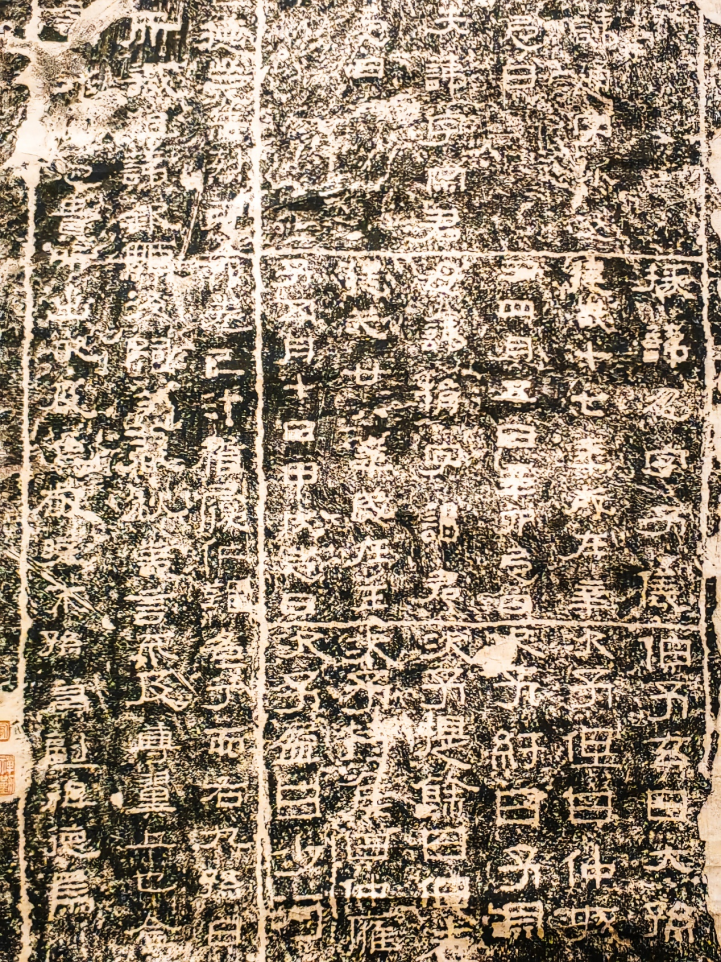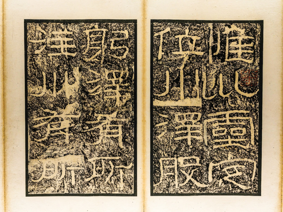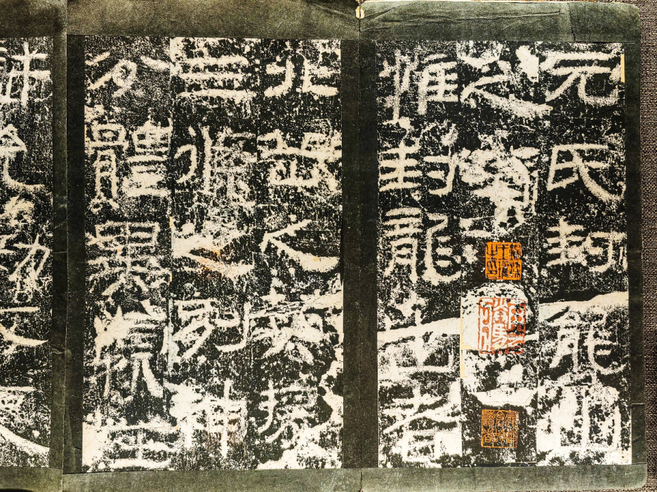 《西狭颂》带有浓厚的篆书意味,结字匀称,可以观察白色的笔画部分和黑色的空隙部分,其分布大多均等相间,且线条圆润丰腴,颇有篆书的整饬之美,历来被誉为“汉隶正则”。