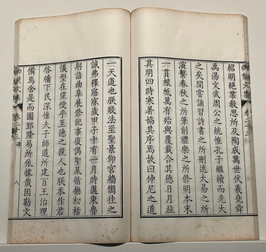 清圣祖玄烨的诗文集,内容涉及当时政治、经济、军事等诸多方面。相较于经、史类书籍,刊刻诗词文集的字体更加灵动、活泼。