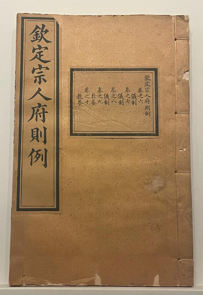 王朝更迭,机构可以继续沿用,但配套法律、管理制度均需再次商榷。《钦定宗人府则例》雕版和《钦定宫中现行则例》雕版正是清朝制定的一种规范性法律文件底版。“则例”是中国古代法律的称谓,有准则、定例之意。在清代,《则例》是中央各行政部门为行使具体职权而编修的办事章程,列出了该部门负责办理各项事宜的规则、流程、案例、条款等。《则例》使用雕版印刷可以极大保证字体、内容甚至是装潢都保持整齐划一的形制,在具有高度规范性的文件管理下,避免失范。