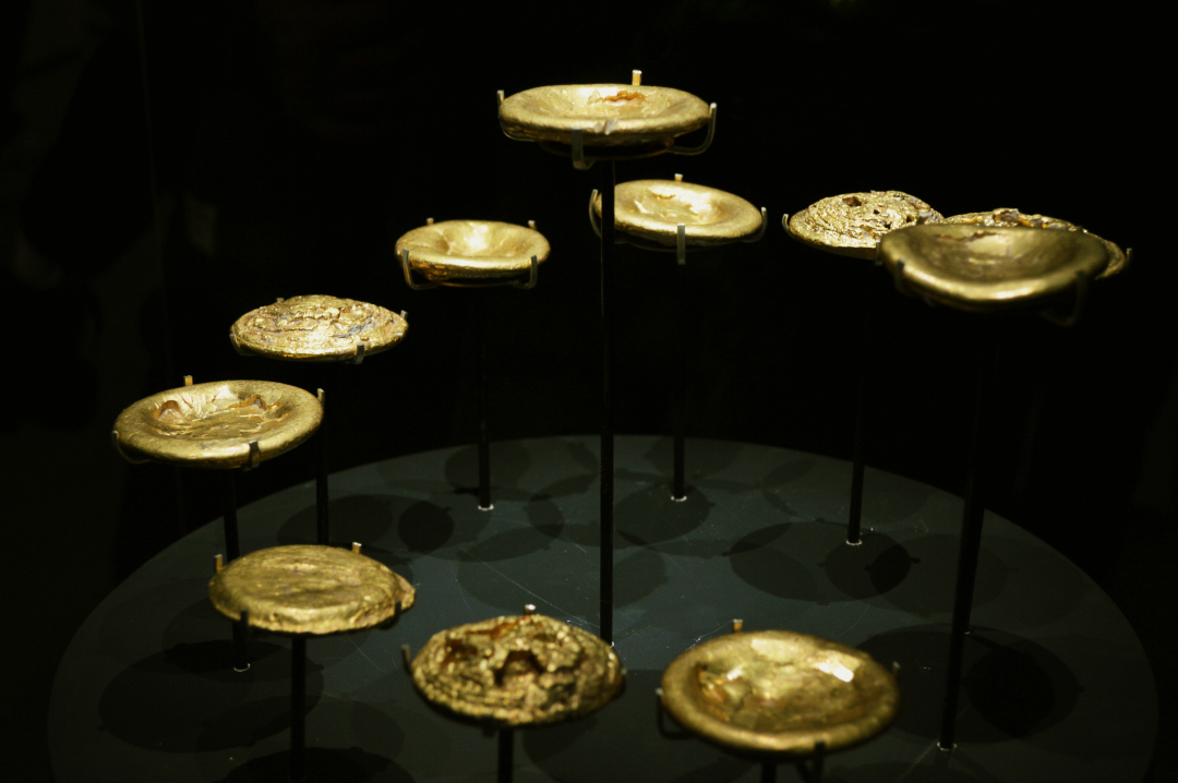 金饼是汉代的黄金货币,从窖藏情况和金饼使用的痕迹分析,这类金饼不完全属于市场上广泛流通的货币。实际上黄金多用于皇帝赏赐诸侯,诸侯进奉,赎罪及较大数额的交易等场合。