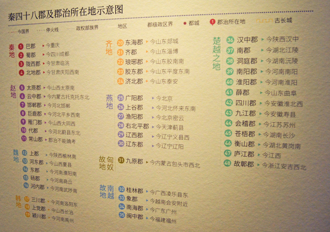 秦四十八郡及郡治所在地示意图