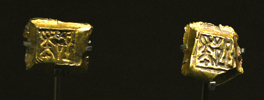 郢爰是楚国的一种称量货币,也是我国最早的原始黄金铸币。“郢”为楚都城名,“爰”为货币重量单位,其含金量在 90 %以上,质量上好的可达到 99 %。使用时,根据需要将金版或金饼切割成零星小块,然后通过特定的天平,称量使用。