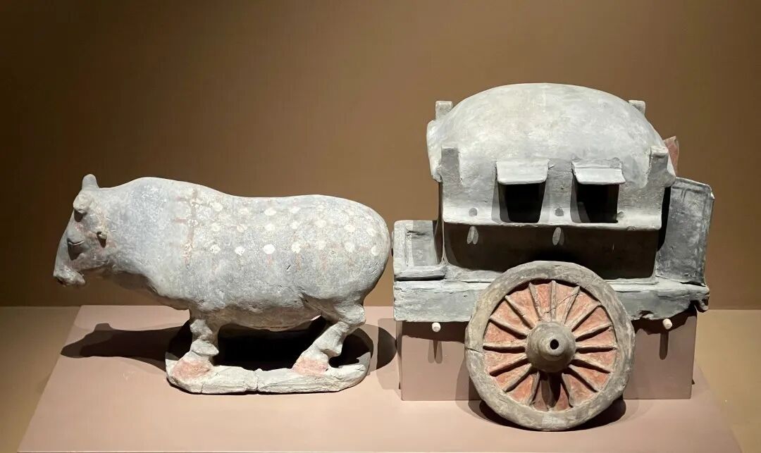 考古学家认为,宋绍祖墓的出行陶俑群以华美的牛车为中心,是承袭西晋以来中原随葬俑群的传统。据研究,东汉晚期牛车开始受到普遍重视,各层人士出行的交通工具逐渐由马车过渡到牛车。其中最高级的要张帷幔覆盖车顶,称为“通幰(xiǎn,车上的帷幔)车”。《晋书·舆服志》载:“通幰车,驾牛,犹如今犊车制,但举其幰通覆车上也。诸王三公并乘之。”