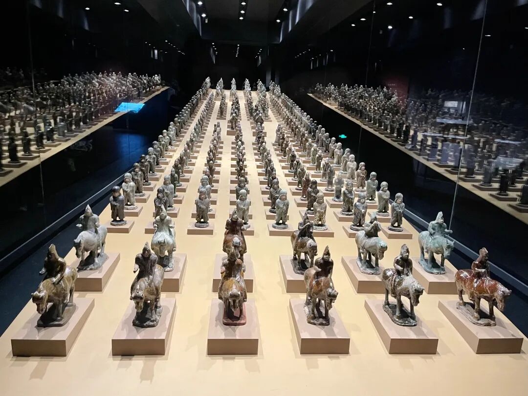 司马金龙夫妇合葬墓发现于 1965 年,虽曾早年被盗,但仍出土了 454 件精美的随葬品。其中最引人注目的是 210 件陶俑组成的仪仗队伍,是迄今为止北魏时期阵容最大的俑阵。