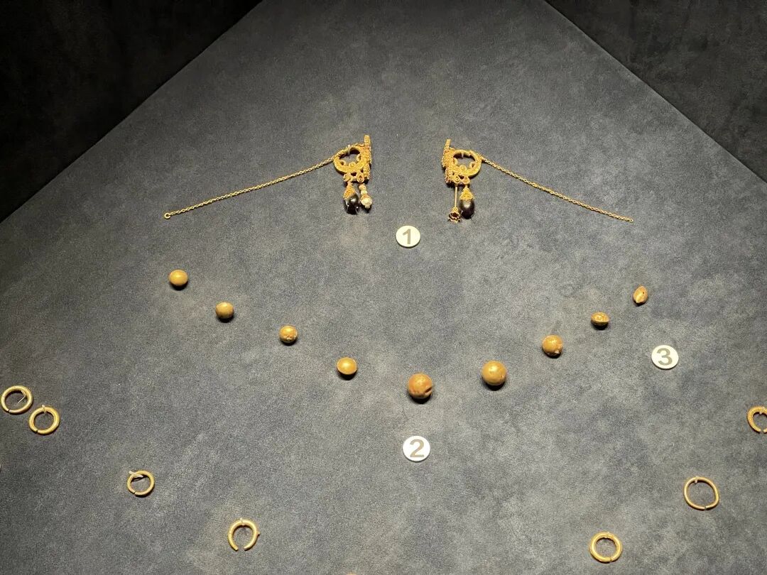 嵌宝石人面龙纹金耳饰及其他金首饰