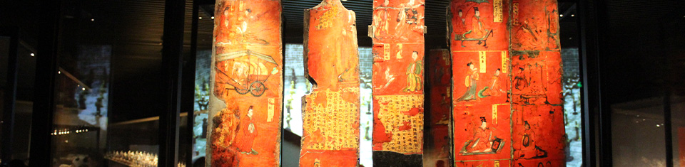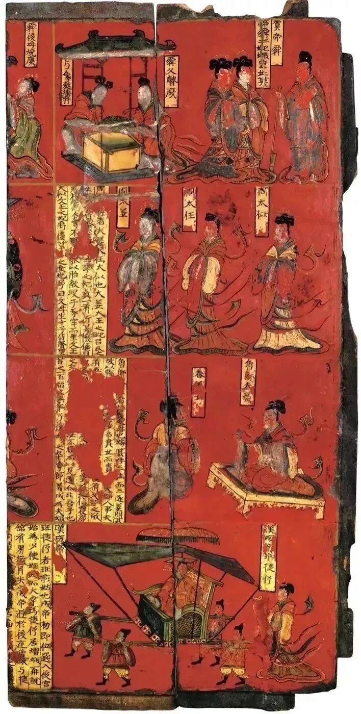更厉害的是司马金龙还有“出将入相”的潜质。他兼具汉与鲜卑血统,在外是勇猛善战的鲜卑骑兵将领,家居时却欣慕儒学,保有汉族士大夫的家学素养。司马金龙墓漆画屏风是首批禁止出国文物之一,画面内容多取材于《列女传》《汉书》等记载的妇女、忠臣、孝子、圣贤故事,彰显了传统的儒学价值观和墓主人的志趣。主体色调鲜明浓艳,以朱漆为地,黑漆勾描人物,黄、青绿、白等色填廓。在画风上,它与顾恺之所作的《洛神赋图》、《女史箴图》十分接近,带有显著的南朝文化色彩,是南北文化交融的重要见证。